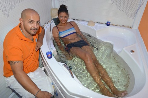 İzmir’de “doktor balıklar” diye bilinen balıklarla masaj ve pedikür hizmeti sunan Spa salonu büyük ilgi görüyor. Ülkemizde henüz pek bilinmeyen ancak birçok ülkede yaygın olan “Fish Spa” ile halk arasında “doktor balıklar” olarak bilinen “Garra Rufa” cinsi balıklar, insan vücudundaki ölü ve gevşek deriyi emerek besleniyorlar. Akvaryumlara el veya ayaklar daldırıldığı anda insan vücuduna üşüşen balıklar, mikro masaj yaparak kan dolaşımını hızlandırıyor, cildin yenilenmesini sağlıyor.