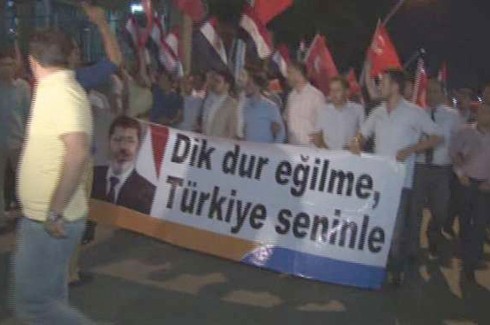 AK Parti Ankara İl Gençlik Kolları üyeleri, Mısır’da yaşanan olaylarda sabah saatlerinde 53 vatandaşın hayatını kaybetmesini protesto etmek için Suudi Arabistan’ın Ankara Büyükelçiliği önünde toplandı. Suudi Arabistan’ın Mısır’da yaşanan olaylara tepkisiz kalmasını eleştiren grup, Büyükelçilik önüne ‘Kınıyoruz’ yazılı siyah çelenk bıraktı. Grup, buradan sloganlar atarak ve tekbir getirerek ABD Büyükelçilik önüne yürüdü. Grup, ABD Büyükelçiliği önüne de siyah çelenk bıraktı. AK Parti Ankara İl Gençlik Kolları üyeleri buradan da Almanya Büyükelçiliği’ne yürüyerek siyah çelenk bıraktı. Grup, daha sonra Mısır Büyükelçiliği’ne yürüdü.