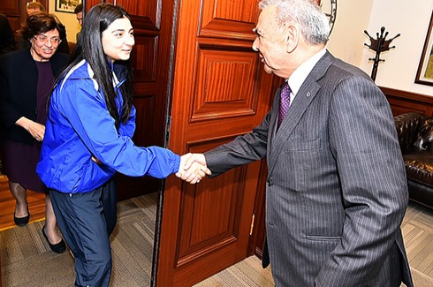 İzmir Büyükşehir Belediye Başkanı Aziz Kocaoğlu, Yunanistan'ın başkenti Atina'da düzenlenen Gençler Avrupa Judo Şampiyonası'nda altın madalya kazanan İzmir Büyükşehir Belediyesi’nin sporcusu Çiçek Akyüz’ü ağırladı.
