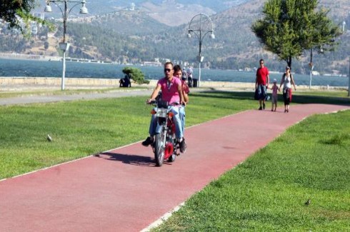 İzmir'e kruvaziyer gemilerle gelen turistler, kenti bisikletle gezdiklerinde sadece kendilerine ait yolları kullanırken İzmir’de yaşayanların yürüyüş bandında bile motosiklet sürmesi dikkat çekiyor.