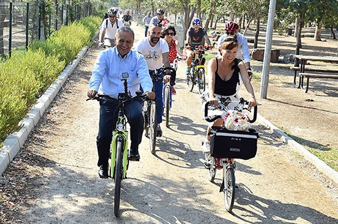 İzmir’in bisiklet kenti olması yolunda yaptıkları çalışmalara katkı koyan tüm İzmirlilere teşekkür eden İzmir Büyükşehir Belediye Başkanı Aziz Kocaoğlu, “Biz belediye olarak sizin kentte daha rahat bisiklet sürmeniz için gerekli alt yapıyı hazırlıyoruz. Bu konuda bir noktaya geldik ama bugüne kadar yapılanlar sadece başlangıç. İzmir Büyükşehir Belediyesi olarak uygun olan her yere bisiklet yolu yapmaya devam edeceğiz. Bununla ilgili master plan çalışması yürütüyoruz. Bu planla birlikte bisikletli ve yaya ulaşımına yönelik ağ planları, teşvik programları gibi birçok alanda çalışmalar gerçekleştireceğiz. En çevreci araç olarak toplu ulaşımda bisiklet kullanımını artıracağız. İzmir bir bisiklet kenti olmalı” diye konuştu.