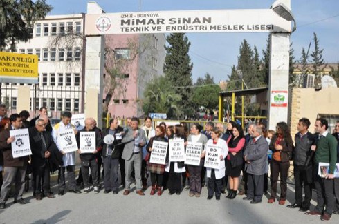 İzmir’in Bornova İlçesi Altındağ semtindeki Mimar Sinan Endüstri Meslek Lisesi’nde öğrenci velisi ile bazı yakınlarının, öğretmeni bıçakla tehdit etmesine Eğitim Sen’den tepki geldi.