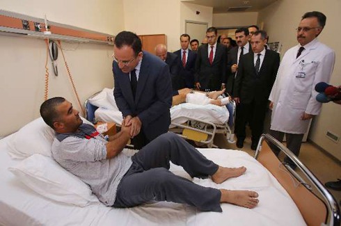 Somali’nin başkenti Mogadişu’da Türkiye Büyükelçiliği ek binasına yönelik yapılan terör saldırısında yaralanan polisleri ziyaret eden Başbakan Yardımcısı Bekir Bozdağ, “Orada bulunan El-Şebab terör örgütü, El Kaide terör örgütü ile de irtibatlı. Bugüne kadar bizim görevlilerimizi veya elçiliğimizi hedef alan doğrudan herhangi bir saldırı olmamıştı, bu ilk defa oluyor” dedi. Ankara Atatürk Eğitim ve Araştırma Hastanesi’nde tedavi altına alınan polis memurları Mustafa Bozkurt, Orhan Ergül, Hakan Beyrek ve Nurullah Çalışıcı’yı Ankara Valisi Alaaddin Yüksel ile birlikte ziyaret eden Başbakan Yardımcısı Bekir Bozdağ, yaralı polis memurları hakkında bilgi aldıktan sonra polislerle görüştü. Hastane çıkışında gazetecilerin sorularına cevap veren Bozdağ, yaralı polislerin durumlarının iyi olduğunu, hayati tehlikelerinin olmadığını açıkladı.