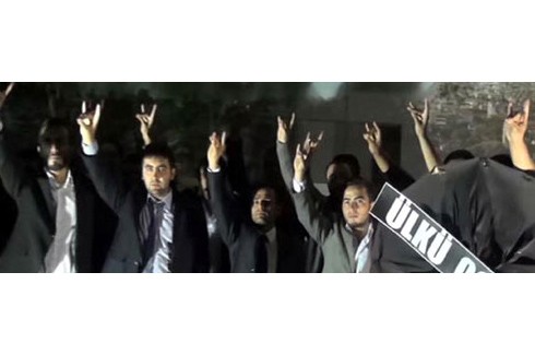 Ülkü Ocakları Üyesi grup Kürtçe afiş bastıran MHP'li Fethiye belediye Başkanı Behçet Saatcı'yı protesto etti.