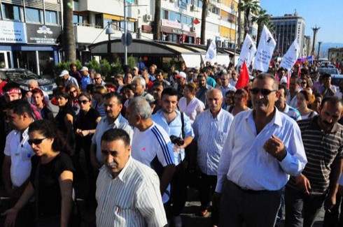 Dün, saat 18.00 sıralarında, Cumhuriyet Meydanı’nda toplanan, aralarında çeşitli parti, sendika, sivil toplum kuruluşları ve vakıf üyelerinin bulunduğu yaklaşık 2 bin kişi, sloganlarla Gündoğdu Meydanı’na yürüdü.