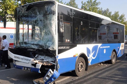 DENİZLİ'de Büyükşehir Belediyesi'ne ait otobüsünün servis minibüsüne arkadan çarpması sonucu 20 kişi yaralandı.
