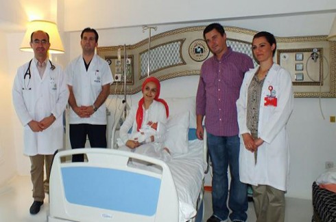 Fotoğraftakiler (soldan sağa): Kardiyoloji Uzmanı Dr.Aydın Çeliker, Jinekoloji Uzmanı Op.Dr.Üzeyir Kalkan, Kübra Dikbaş ve bebeği, eşi Halil Dikbaş, Acil Servis Sorumlusu Dr.Ayfer Oklay Bozkaya.