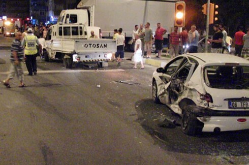 Kaza, Milas-Bodrum Karayolu'nun Üçyol Mevkii'nde, saat 22.15 sıralarında meydana geldi. Yatağan'dan aldığı kireç yükünü Bodrum'a götüren Mustafa Açıkgöz'ün (45) kullandığı 20 PT 034 plakalı TIR'ın Boğayokuşu Mevkii'nden rampayı inerken ısınan balataları tutuştu. Balataları yandığı için freni tutmayan TIR, kavşakta kırmızı ışıkta bekleyen Ercan Çetin'in idaresindeki 48 U 6047 plakalı kamyonet, Münir Serter Kartaban'ın yönetimindeki 48 VA 495 otomobil ve Mehmet Mertsoy'un kontrolündeki 06 TFB 21 plakalı otomobillere çarptı. Ardından kaldırıma çıkan TIR, yol kenarındaki güneş enerjisi sistemleri satan bir işyerinin duvarına çarparak alev aldı. TIR'da sıkışan şoför Mustafa Açıkgöz, yaralandı.
