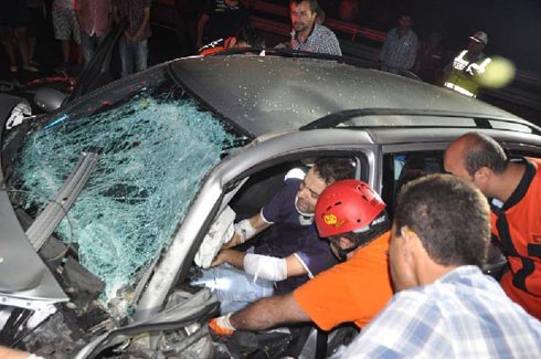 Kaza, dün saat 23.30 sıralarında Kütahya-Eskişehir karayolunun 31'inci kilometresinde meydana geldi. Yol yapım çalışmaları nedeniyle ulaşımın tek şeritten sağlandığı karayolunda Eskişehir yönünden gelen Onur Çakıroğlu yönetimindeki 34 HN 5974 plakalı otomobil, karşı yönden gelen Ahmet Fatih Ersoy yönetimindeki AA 855 HC yabancı plakalı otomobille kafa kafaya çarpıştı.