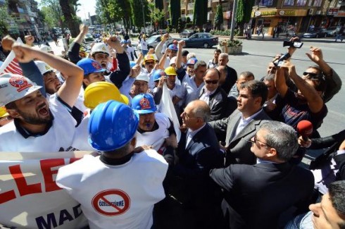 Ele ele tuşup zincir oluşturan 200 işçi, yaklaşık 3 kilometre yürüyüp Adnan Menderes Bulvarı’na ulaştı. Polis burada işçileri, kaldırıma çıkmaları için uyardı. Ancak, uyarıya aldırış etmeyen işçiler, alkış ve ıslıklı protestoda bulunup, yürüyüşlerine devam etti. Bunun üzerine polis tekrar barikat kurup, yolu kesti. Ancak, işçiler barikatı aşıp geçmek isteyince arbede yaşandı.