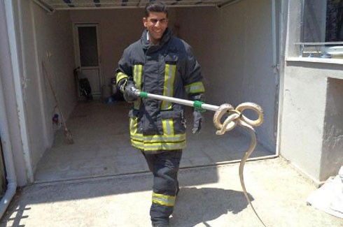 Eve gelen itfaiye ekipleri, dikkatli bir şekilde yaklaşarak yılanı demir çubukla yakaladı. Yılan daha sonra doğaya bırakıldı. Ev sahipleri de yılanın yakalanmasıyla rahat bir nefes aldı.