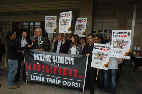 Suat Kaptaner, iki yıl önce Gaziantep’te görevi başındayken yine bir hasta yakını tarafından öldürülen meslektaşları Ersin Arslan’ı, hekime şiddetin devam ettiği koşullarda anmak zorunda kaldıklarını söyledi. Sağlıkta mucizeler yaratıldığının ifade edildiği bir süreçte, siyasal iktidarın ve en başta Sağlık Bakanlığı’nın şiddet ortamının sağlık alanındaki en önemli sorunlardan biri haline gelmesine dair söz söylemekten kaçındığını belirten Kaptaner, “Her fırsatta hekimlerin onurunu zedeleyici demeçlerin verilebildiği bir ortamda, yetkililerce konunun sorun olarak kabul edilmeyip, gündeme getirilmemesinin, tartışılmamasının nedeni, ancak asıl sorumluların ortaya konulmasından kaçınılması olarak açıklanabilir” dedi.
