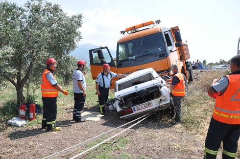 İddiaya göre, çarpışmanın şiddeti ile kamyonun otomobili metrelerce sürükleyerek zeytin tarlasında durduğu belirtildi. Kaza sonucu otomobilde bulunan sürücü Fatma Sever ile yanında yolcu olarak bulunan Olcay Tetik(25) yaşamını yitirdi. İtfaiye ekipleri araçta sıkışan cesetleri güçlükle bulundukları yerden çıkardı. Kazayla ilgili soruşturma başlatıldı.