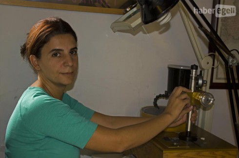 Gülay Atıcı Ertan, İzmir’in tarihi Kızlarağası Hanı’nda bulunan işyerinde hem sanat eserleri üretiyor hem de değerli taş bilincini halka yaymaya çalışıyor.