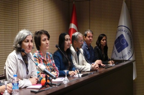 HDP Eş Başkanı Figen Yüksekdağ’ın da aralarında bulunduğu siyasi parti liderleri bir gece kaldıkları Kobani ile ilgili izlenimlerini İnşaat Mühendisleri İstanbul Şubesi’ndeki basın toplantısında anlattı.