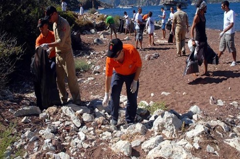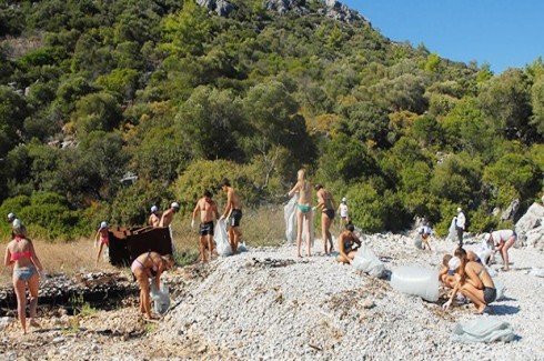 Koy temizliğini turistler yaptı