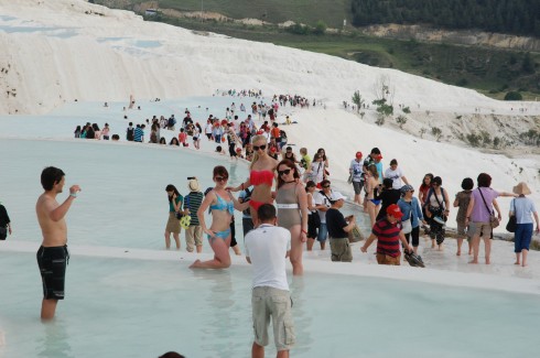 Denizli’nin dünyaca ünlü beldesi Pamukkale’yi haftasonu binlerce kişi ziyaret etti.