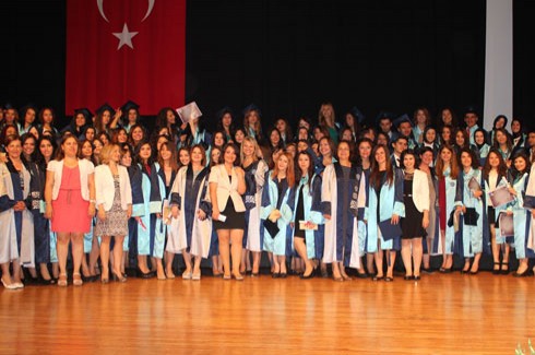 Ebelik Bölümünden Leman Çavuş, Gizem Örcütaş, Zekiye Merve Berkman ve Hemşirelik Bölümünden dereceye giren Hayat Bulutlu, Zeynep Aslan, Nazife Gamze Özer’e diplomasıyla birlikte çeşitli hediyeler verildi.Son mezunu Sağlık Memurluğu Bölümü’nün son mezunu Ayhan Ağgün’ün diploma ve başarı belgelerinin verilmesini takiben tüm öğrenciler meslek andını okudu. Okulunu bitiren her öğrenci adına Ege Orman Vakfı ile işbirliği çerçevesinde birer fidan dikildiği ifade edildi.