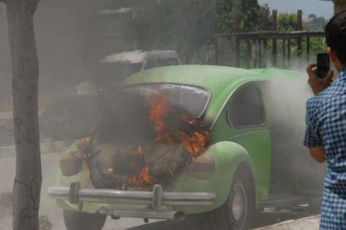 Fethiye’de yaşayan bir İngiliz, park halindeki otomobilinde yangın çıkınca yaklaşık 20 dakika alevlerle boğuştu. Çıkardığı elbiseleri ve yangın tüpüyle yanan ’vosvos’unu söndürmeye çalışan şahsın imdadına, vatandaşlar ve itfaiye yetişti. Edinilen bilgiye göre, Fethiye’de yaşayan ve Çalış Plajı’na gelen Keith Broderinck’in (58), öğle saatlerinde Fethiye Adliyesi yakınına park etmiş olduğu 48 MB 287 plakalı Volkswagen otomobili, bilinmeyen nedenle alev aldı. Aniden dumanların çıktığı otomobildeki yangını gören Broderinck, üstündeki elbisesini çıkarıp alevlere müdahale etmek istedi. Elindeki elbiseyi alevlere vuran Broderinck’in yardımına, çevredeki vatandaşlar koştu. Fethiye Devlet Hastanesi’ndeki güvenlik görevlileri, yangın söndürme tüpleriyle alevlere müdahale etti.